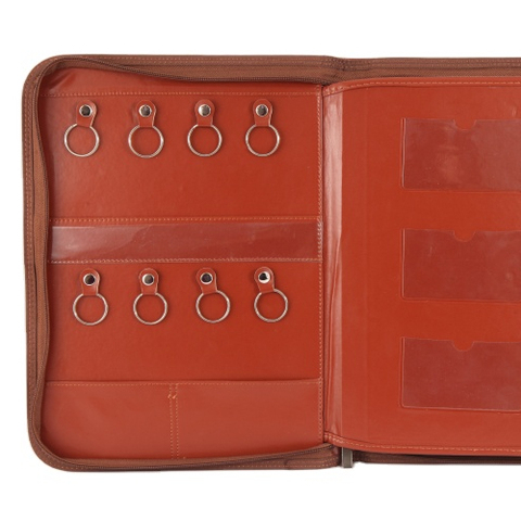 カスタムA4A5ラージサイズジップバッグカードホルダーレザーコンパクトキーリングホテルルームカーキーホルダーホルダーオーガナイザー