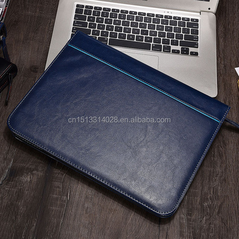 ファクトリープロフェッショナルカスタムPUレザーA3A4マルチポケットビジネスドキュメントフォルダーブラックブルージップポートフォリオフォルダーバッグ
